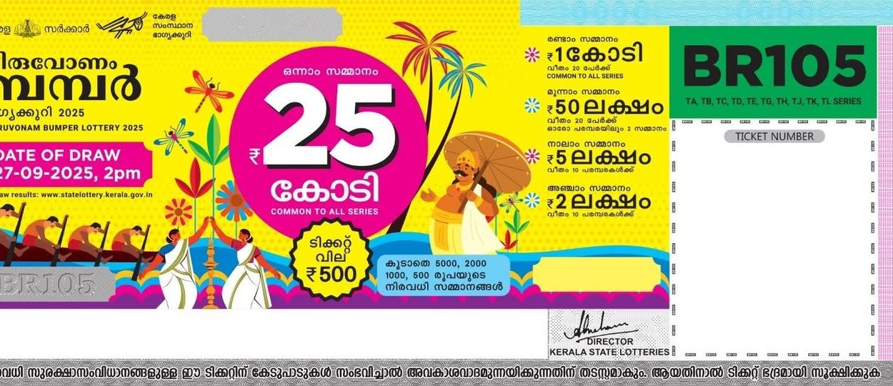 തിരുവോണം ബമ്പര് ഭാഗ്യക്കുറിയുടെ 75 ലക്ഷം ടിക്കറ്റുകളാണ് ഈ വര്ഷം അച്ചടിച്ച് വിറ്റഴിച്ചത്. പാലക്കാടാണ് ഏറ്റവും കൂടുതല് വില്പന നടന്നത്. 14,07,100 എണ്ണം ടിക്കറ്റുകളാണ് ഇവിടെ വിറ്റത്. രണ്ടാം സ്ഥാനം തൃശ്ശൂര് ജില്ലയ്ക്കാണ് , 9,37,400 ടിക്കറ്റുകളും മൂന്നാം സ്ഥാനത്തുള്ള തിരുവനന്തപുരത്ത് 8,75,900 ടിക്കറ്റുകളും ഏജന്സികള് വഴി വില്പന നടന്നു.ഒന്നാം സമ്മാനമായി 25 കോടി രൂപയാണ് ഓണം ബമ്പര് ഭാഗ്യക്കുറിയുടെ നറുക്കെടുപ്പിലൂടെ ലഭിക്കുന്നത്. രണ്ടാം സമ്മാനമായി ഒരു കോടി രൂപ വീതം 20 പേര്ക്കും മൂന്നാം സമ്മാനമായി 50 ലക്ഷം വീതം 20 പേര്ക്കും നാലാം സമ്മാനമായി അഞ്ചുലക്ഷം വീതം 10 പരമ്പരകള്ക്കും അഞ്ചാം സമ്മാനമായി രണ്ടു ലക്ഷം വീതം 10 പരമ്പരകള്ക്കും നല്കുന്നു .കഴിഞ്ഞ 27-ന് നടത്താന് നിശ്ചയിച്ചിരുന്ന തിരുവോണം ബമ്പര് നറുക്കെടുപ്പ് അപ്രതീക്ഷിതമായുണ്ടായ കനത്ത മഴയിലും ജിഎസ്ടി മാറ്റവുമായി ബന്ധപ്പെട്ടും ഏജന്റുമാരുടെയും വില്പനക്കാരുടെയും അഭ്യര്ഥന പരിഗണിച്ച് ഈ മാസം നാലിലേക്ക് മാറ്റിവയ്ക്കുകയായിരുന്നു.