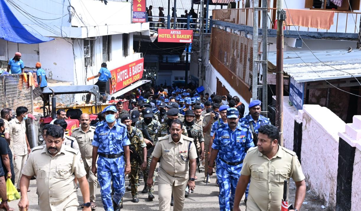 ശബരിമലയിൽ സുരക്ഷാ ക്രമീകരണങ്ങൾ ശക്തമാക്കി. ഇതിന്റെ ഭാഗമായി കേരള പോലീസ്, സി.ആർ.പി.എഫ് – ആർ. എ.എഫ്, എൻ.ഡി.ആർ.എഫ് , ആന്റി സബോട്ടേജ് ചെക്ക് ടീം, ബോംബ് ഡിറ്റക്ഷൻ ആൻഡ് ഡിസ്പോസൽ സ്ക്വാഡ് (BDDS), സ്പെഷ്യൽ ബ്രാഞ്ച് എന്നീ സേനാ വിഭാഗങ്ങൾ സംയുക്തമായി റൂട്ട് മാർച്ച് നടത്തി.