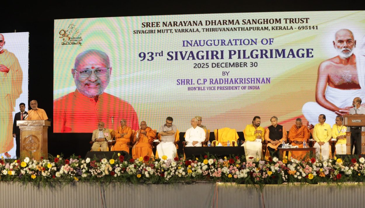 ഉപരാഷ്ട്രപതി സി. പി. രാധാകൃഷ്ണൻ ഇന്ന് വർക്കലയിലെ ശിവഗിരി മഠത്തിൽ 93-ാമത് ശിവഗിരി തീർത്ഥാടനം ഉദ്ഘാടനം ചെയ്തു. ശിവഗിരി വെറുമാരു തീർത്ഥാടന കേന്ദ്രം മാത്രമല്ല, മറിച്ച് ഒരു സജീവമായ തത്ത്വചിന്തയും ശ്രീനാരായണ ഗുരു വിഭാവനം ചെയ്ത സാമൂഹിക ഉണർവിന്റെ യാത്രയുമാണെന്ന് സമ്മേളനത്തെ അഭിസംബോധന ചെയ്തു സംസാരിക്കവേ ഉപരാഷ്ട്രപതി വിശദീകരിച്ചു.