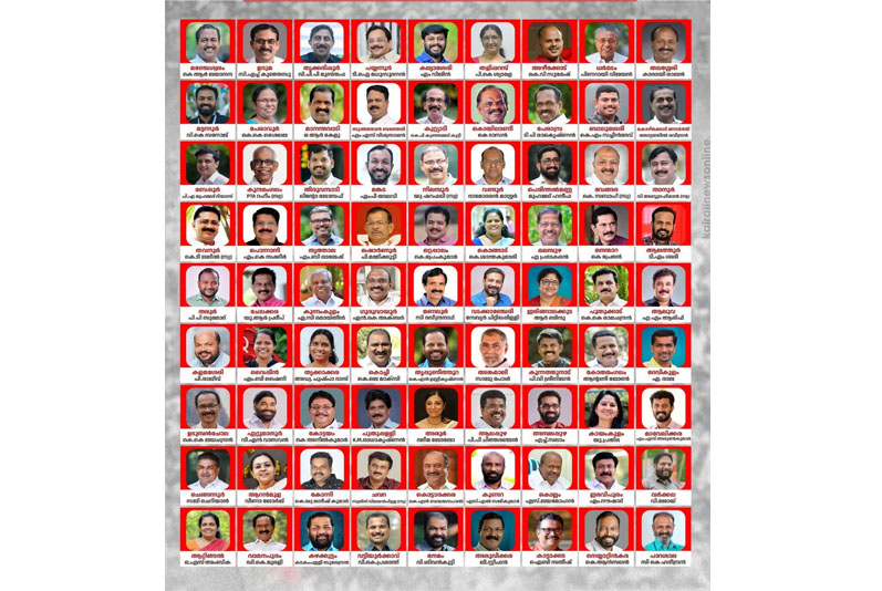 1. മഞ്ചേശ്വരം – കെ.ആര്. ജയാനന്ദ 2. ഉദുമ -സി.എച്ച് കുഞ്ഞമ്പു 3. തൃക്കരിപ്പൂര് – വി.പി.പി മുസ്തഫ 4. പയ്യന്നൂര് – ടി.ഐ. മധുസൂദനന് 5. തളിപ്പറമ്പ് – പി.കെ. ശ്യാമള ടീച്ചര്. 6. അഴീക്കോട് – കെ.വി. സുമേഷ് 7. കല്ല്യാശ്ശേരി – എം. വിജിന്.8. ധര്മ്മടം – പിണറായി വിജയന് 9. മട്ടന്നൂര് – വി.കെ. സനോജ്.10. പേരാവൂര് – കെ.കെ. ശൈലജ 11. തലശ്ശേരി – കാരായി രാജന്.12. മാനന്തവാടി – ഒ.ആര്. കേളു 13. സുല്ത്താന്ബത്തേരി – എം.എസ്. വിശ്വനാഥന്.14. കുറ്റ്യാടി – കെ.പി. കുഞ്ഞമ്മദ് കുട്ടി മാസ്റ്റര് 15. പേരാമ്പ്ര – ടി.പി. രാമകൃഷ്ണന്.16. ബാലുശ്ശേരി – കെ.എം. സച്ചിന്ദേവ് 17. കൊയിലാണ്ടി – കെ.ദാസന്.18. കോഴിക്കോട് നോര്ത്ത് – തോട്ടത്തില് രവീന്ദ്രന് 19. ബേപ്പൂര് – പി.എ. മുഹമ്മദ് റിയാസ്.20. തിരുവമ്പാടി – ലിന്റോ ജോസഫ് 21. പൊന്നാനി – എം.കെ.സക്കീര് 22. വണ്ടൂര് – ഡോ. കെ.കെ. ദാമോദരന് മാസ്റ്റര്.23. പെരിന്തല്മണ്ണ – വി.പി. മുഹമ്മദ് ഹനീഫ 24. മങ്കട – എം.പി. അലവി.25. തൃത്താല – എം.ബി. രാജേഷ് 26. തരൂര് – പി.പി. സുമോദ്.27. ആലത്തൂര് – ടി.എം.ശശി 28. നെന്മാറ – കെ.പ്രേമന്.29. ഷൊര്ണ്ണൂര് – പി. മമ്മിക്കുട്ടി 30. ഒറ്റപ്പാലം – കെ. പ്രേംകുമാര്.31. കോങ്ങാട് – കെ.ശാന്തകുമാരി 32. മലമ്പുഴ – എ. പ്രഭാകരന്.33. കുന്നംകുളം – എ.സി. മൊയ്തീന് 34. ചേലക്കര – യു.ആര്. പ്രദീപ് 35. മണലൂര് – സി. രവീന്ദ്രനാഥ്.36. ഗുരുവായൂര് – എന്.കെ. അക്ബര് 37. പുതുക്കാട് – കെ.കെ. രാമചന്ദ്രന്.38. ഇരിങ്ങാലക്കുട – ആര്. ബിന്ദു 39. വടക്കാഞ്ചേരി – സേവ്യര് ചിറ്റിലപ്പള്ളി.40. അങ്കമാലി – സാജു പോള് 41. ആലുവ – എ.എം. ആരിഫ്.42. കുന്നത്തുനാട് – പി.വി. ശ്രീനിജിന് 43. വൈപ്പിന് – എം.ബി. ഷൈനി.44. കളമശ്ശേരി – പി. രാജീവ് 45. തൃക്കാക്കര – പുഷ്പാദാസ്.46. കൊച്ചി – കെ.ജെ. മാക്സി 47. തൃപ്പൂണിത്തുറ – കെ.എന്. ഉണ്ണികൃഷ്ണന്.48. കോതമംഗലം – ആന്റണി ജോണ് 49. ഉടുമ്പന്ചോല – കെ.കെ. ജയചന്ദ്രന്.50. ദേവികുളം – എ.രാജ 51. ഏറ്റുമാനൂര് – വി.എന്. വാസവന്.52. കോട്ടയം – കെ.അനില്കുമാര് 53. പുതുപ്പള്ളി – കെ.എം.രാധാകൃഷ്ണന്.54. അരൂര് – ദലീമ 55. ആലപ്പുഴ – പി.പി.ചിത്തരഞ്ജന്.6. അമ്പലപ്പുഴ – എച്ച്. സലാം 57. കായംകുളം – യു.പ്രതിഭ.58. ചെങ്ങന്നൂര് – സജി ചെറിയാന് 59. മാവേലിക്കര – എം.എസ്. അരുണ് കുമാര്.60. ആറന്മുള – വീണാ ജോര്ജ്ജ് 61. കോന്നി – കെ.യു. ജനീഷ്കുമാര് 62. കൊട്ടാരക്കര – കെ.എന്. ബാലഗോപാല്,63. കുണ്ടറ – എസ്.എല്. സജികുമാര് 64. ഇരവിപുരം – എം. നൗഷാദ് 65. കൊല്ലം – എസ്. ജയമോഹന്.6. വര്ക്കല – വി. ജോയി 67. ആറ്റിങ്ങല് – ഒ.എസ്. അംബിക.68. വാമനപുരം – ഡി.കെ മുരളി 69. കഴക്കൂട്ടം – കടകംപള്ളി സുരേന്ദ്രന്.70. വട്ടിയൂര്ക്കാവ് – വി.കെ. പ്രശാന്ത് 71. നേമം – വി. ശിവന്കുട്ടി.72. കാട്ടാക്കട – ഐ.ബി. സതീഷ് 73. അരുവിക്കര – ജി. സ്റ്റീഫന്.74. നെയ്യാറ്റിന്കര – കെ. ആന്സലന് 75. പാറശ്ശാല – സി.കെ. ഹരീന്ദ്രന്.