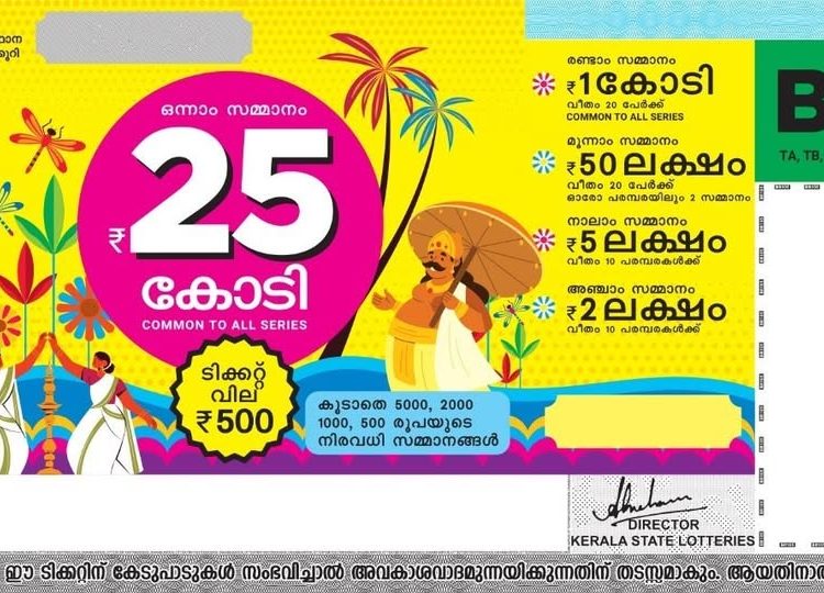 തിരുവോണം ബമ്പര്‍( 25 കോടി ) നറുക്കെടുപ്പ് നാളെ; വിറ്റഴിച്ചത് 75 ലക്ഷം ടിക്കറ്റുകള്‍
