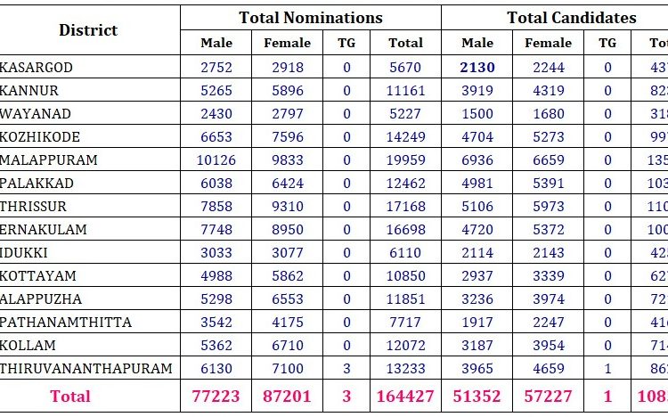 നാമനിർദ്ദേശ പത്രികകളുടെ സൂക്ഷ്മപരിശോധന ഇന്ന് ( നവം. 22)10 മുതൽ ആരംഭിക്കും